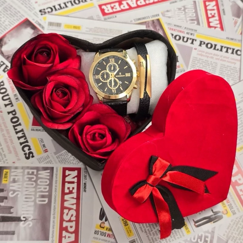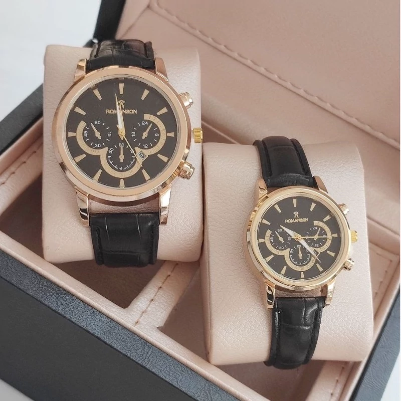 ست ساعت مردونه زنونه چرم رومانسون با دستبند چرم
