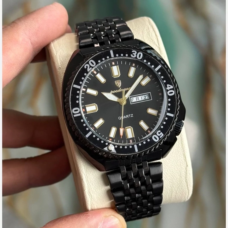 ساعت مردانه پوداگار poedagar طرح خاص بند مشکی صفحه مشکی