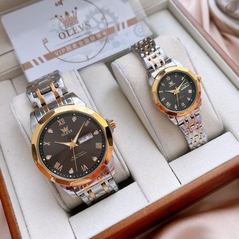 ست ساعت مچی مردانه و زنانه الوز olevs طرح الماس ضد آب