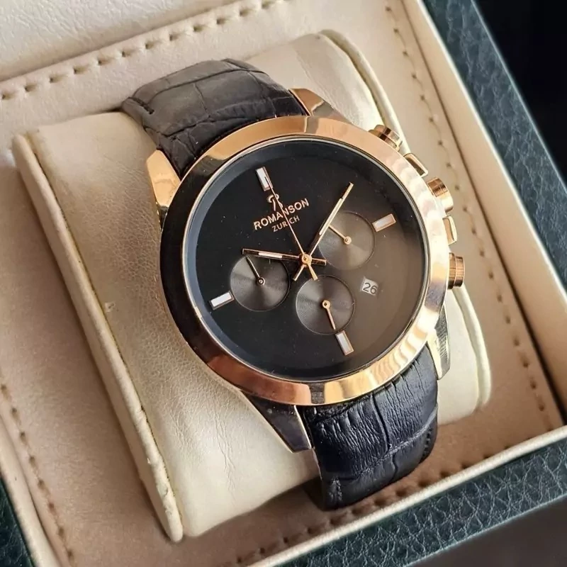 ساعت مردانه سه موتور فعال بند چرمی رومانسون زوریخ