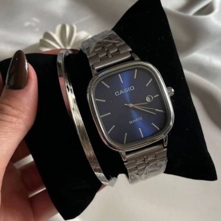 ساعت مچی مردونه کاسیو casio اولد مانی نقره ای با دستبند بنگلی