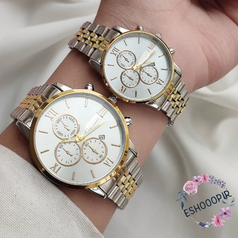 ساعت ست مردانه و زنانه نقره ای سیتیزن وی آی پی citizen vip نقره ای طلایی