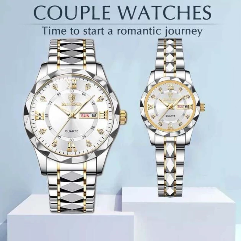 ساعت ست مردونه و زنونه رومانسون رنگ طلایی با کیفیت عالی و تقویم دار