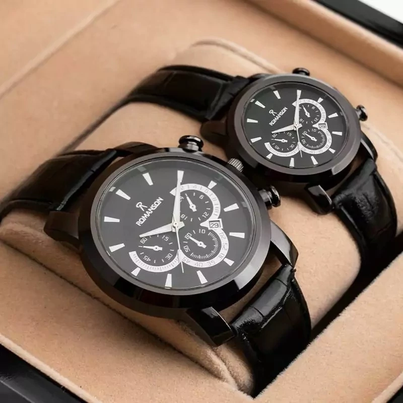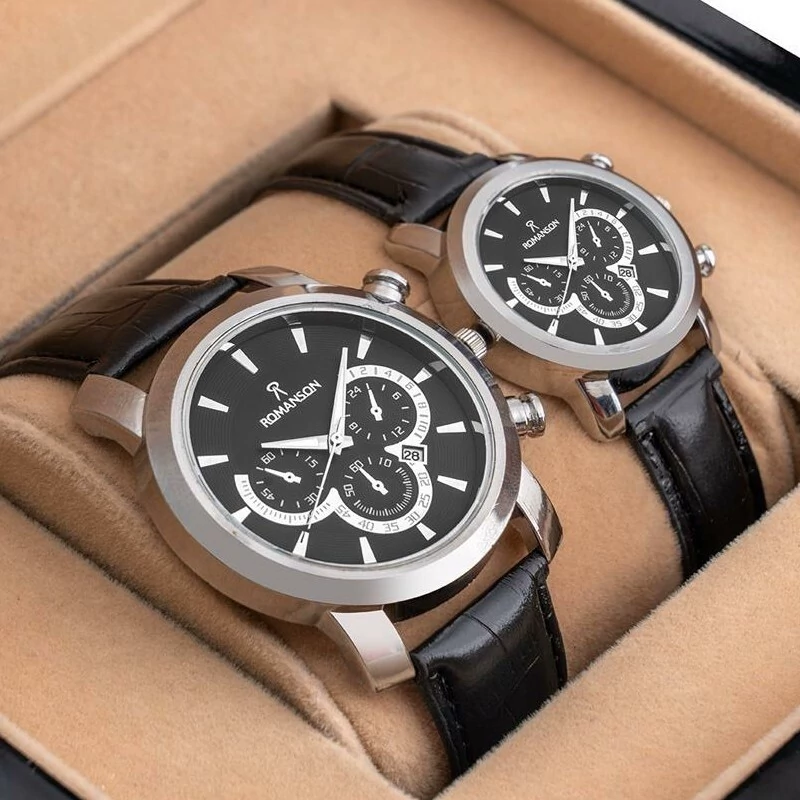 ست ساعت مچی مردونه و زنونه رومانسون Romanson چرم مشکی