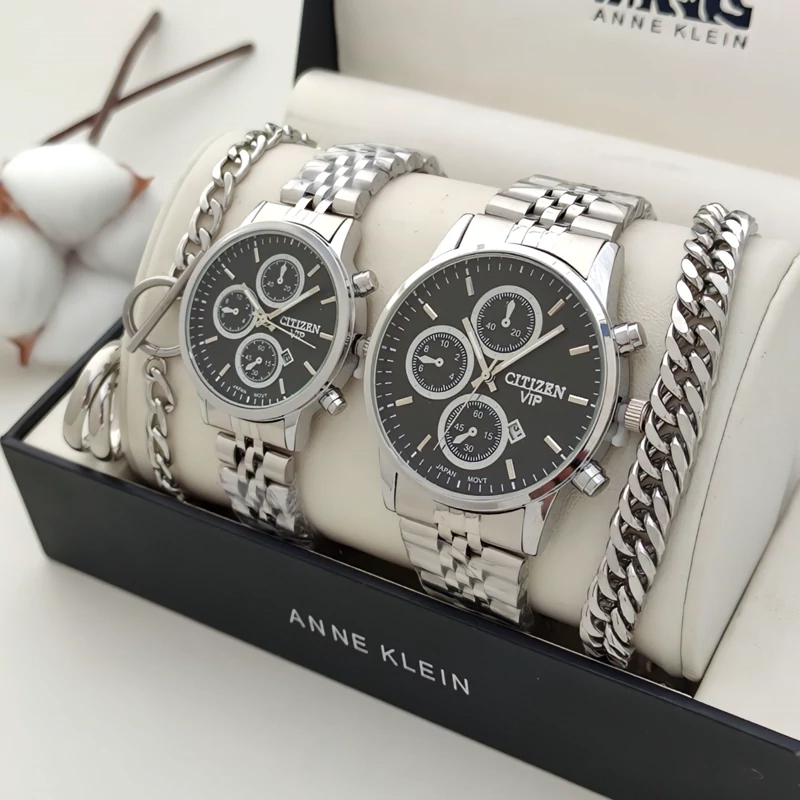 ساعت ست مردانه و زنانه نقره ای سیتیزن وی آی پی citizen vip نقره ای طلایی