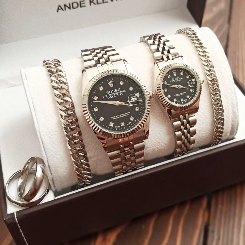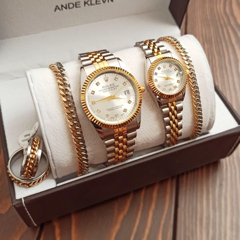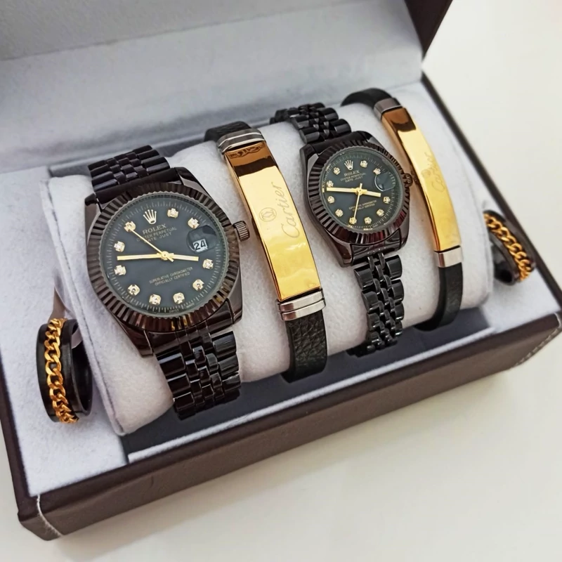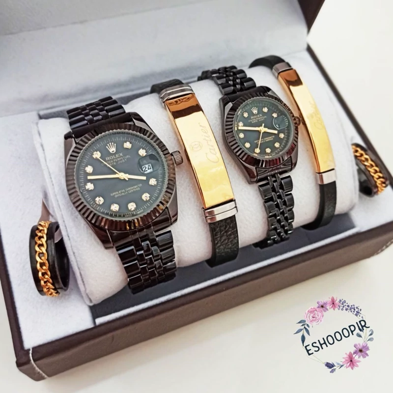 ساعت رولکس Rolex ست مردانه و زنانه با دستبند ست کارتیه و انگشتر ست