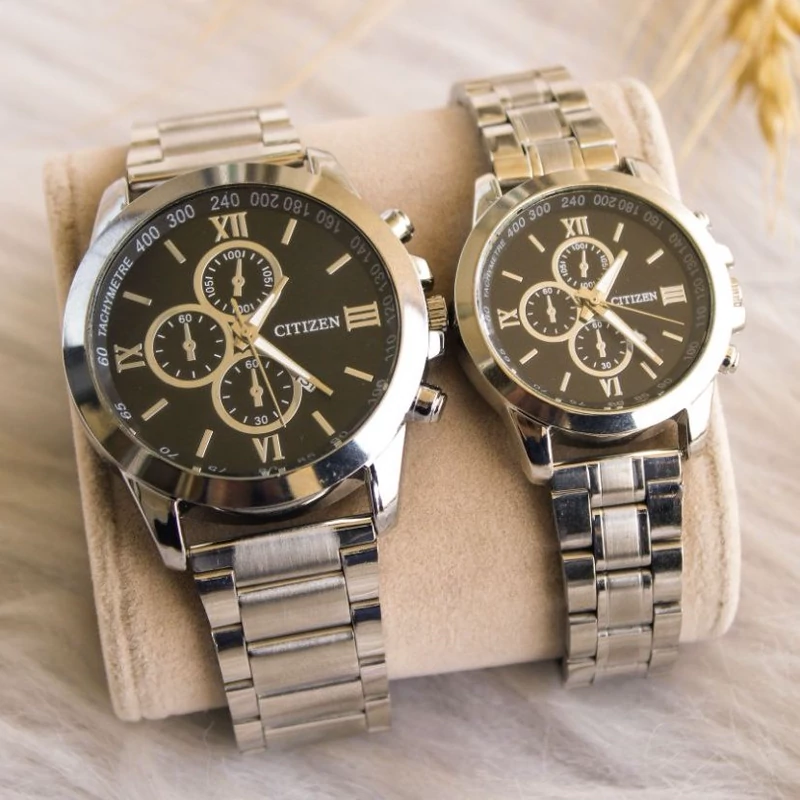 ست ساعت مردانه و زنانه سیتیزن vip استیل مشکی