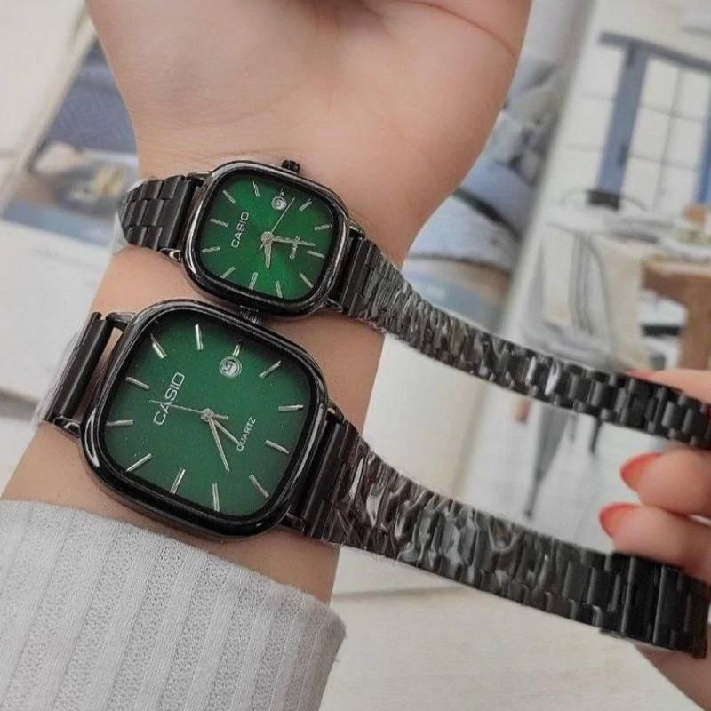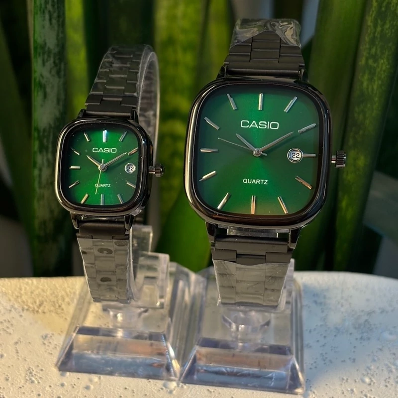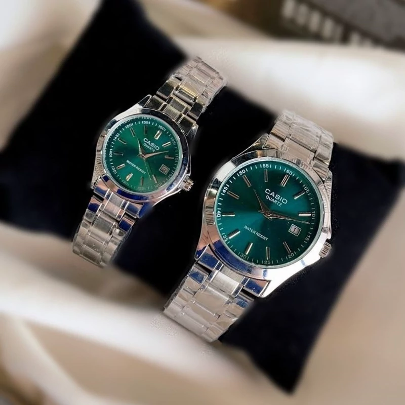 ست ساعت مردونه و زنونه کاسیو casio استیل صفحه سبز