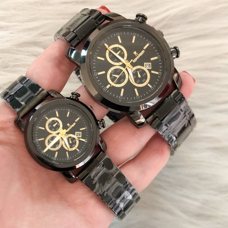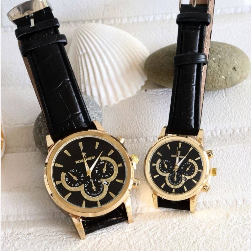 ست ساعت زنانه و مردانه رومانسون Romanson بند مشکی (مشکی طلایی ) ، تقویم فعال با ارسال رایگان