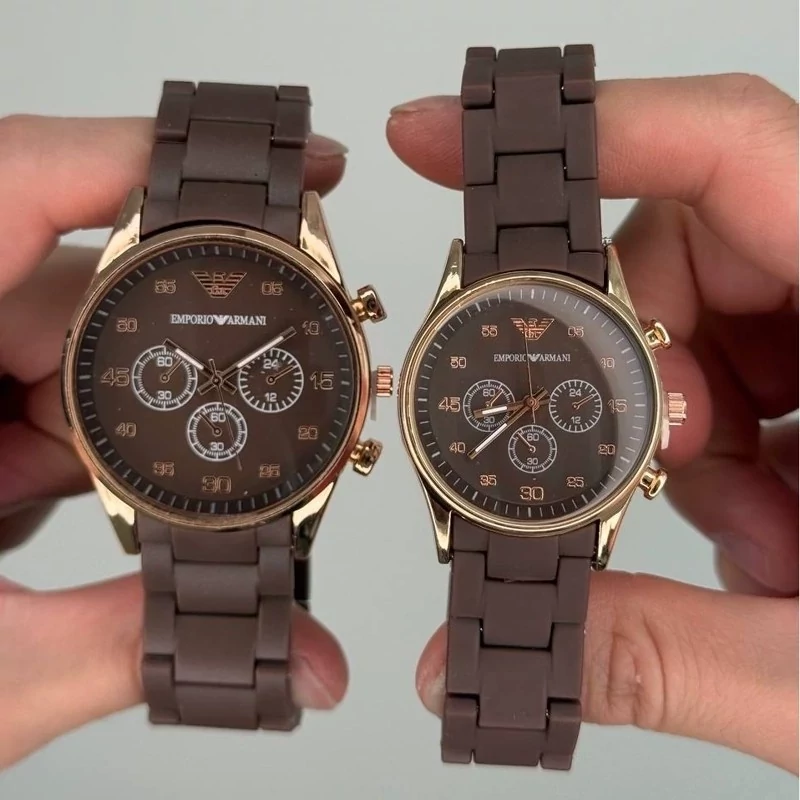 ست ساعت زنونه و مردونه امپریو آرمانی با بند پی یو قهوه ای abs