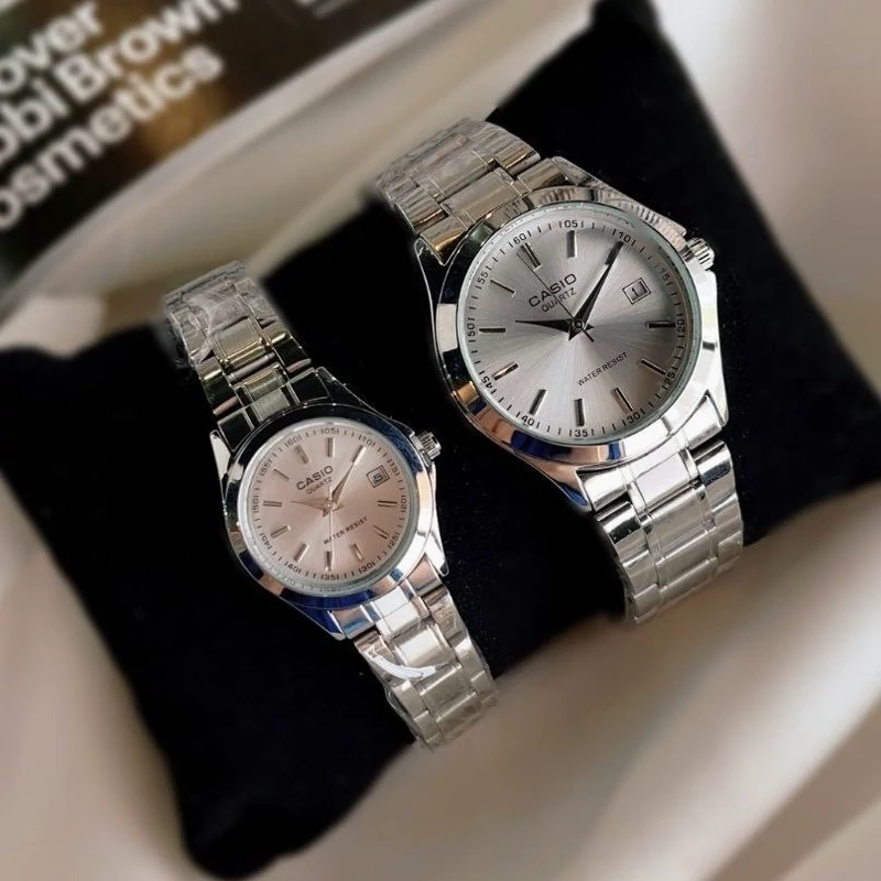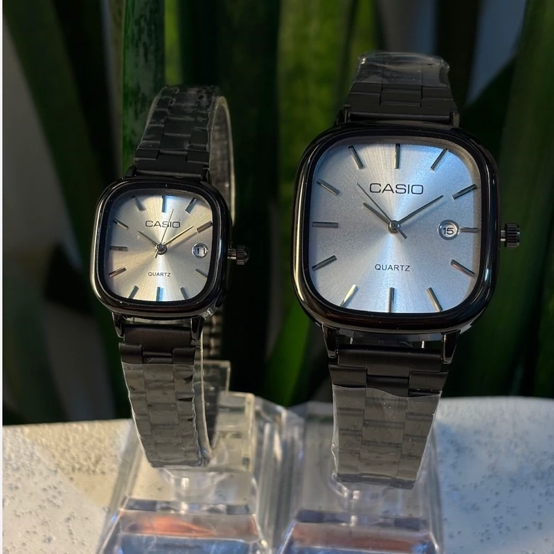 ست ساعت مردونه و زنونه کاسیو اولد مانی بند استیل مشکی