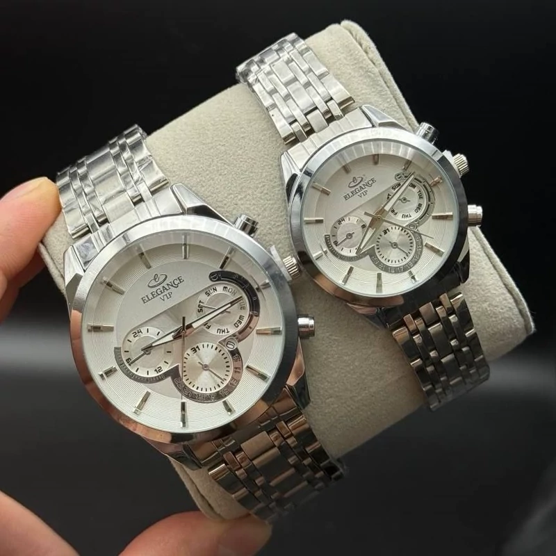 ست ساعت مردونه زنونه الگانس elegance vip بند استیل نقره ای