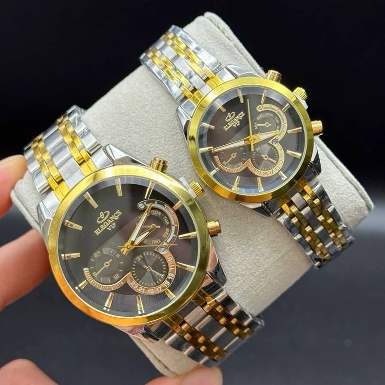 ست ساعت مردونه و زنونه الگانس elegance vip بند استیل نقره ای طلایی