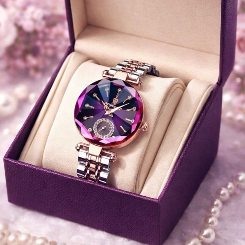 ساعت مچی زنانه پوداگار اورجینال Poedagar شیشه الماسی بنفش و سبز