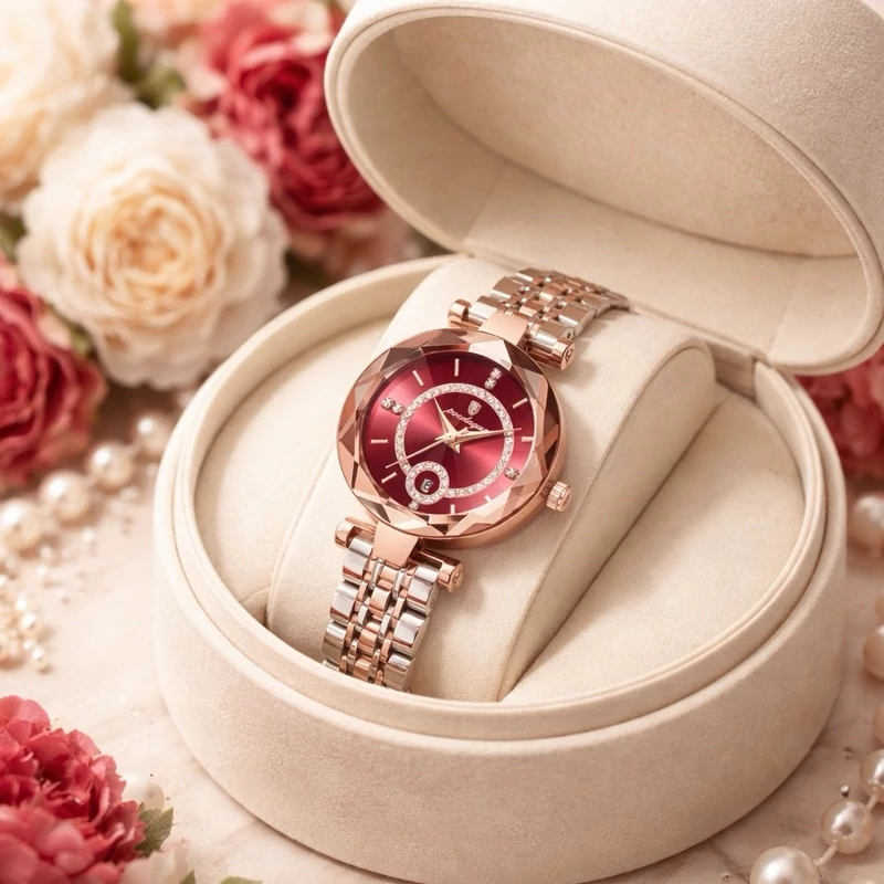 ساعت مچی زنانه پوداگار اورجینال Poedagar صفحه قرمز الماسی ضدخش