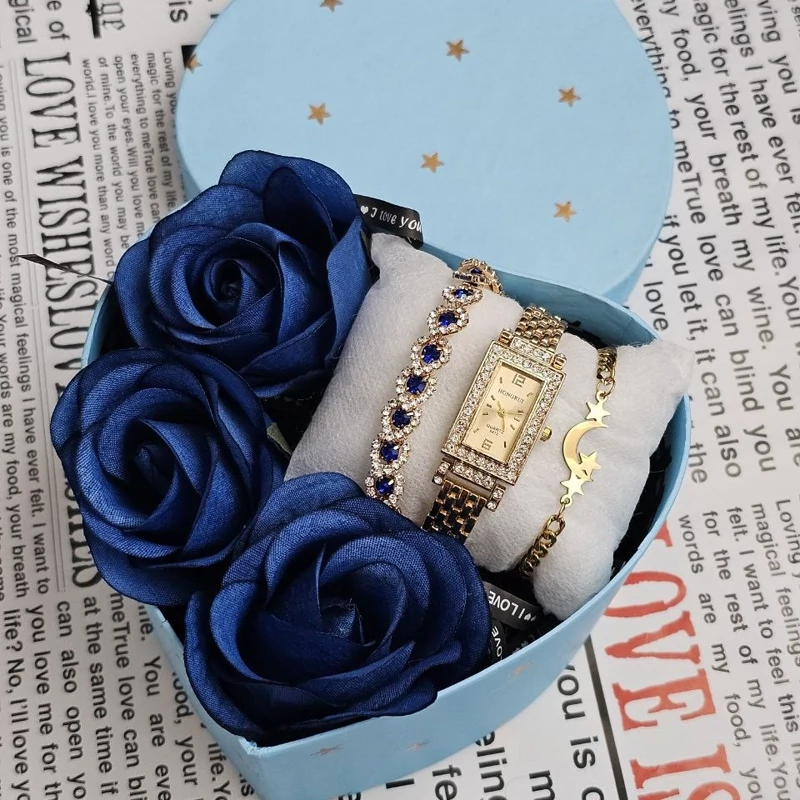پک هدیه زنانه ساعت و دستبند با باکس و گل مناسب کادو به خانم ها