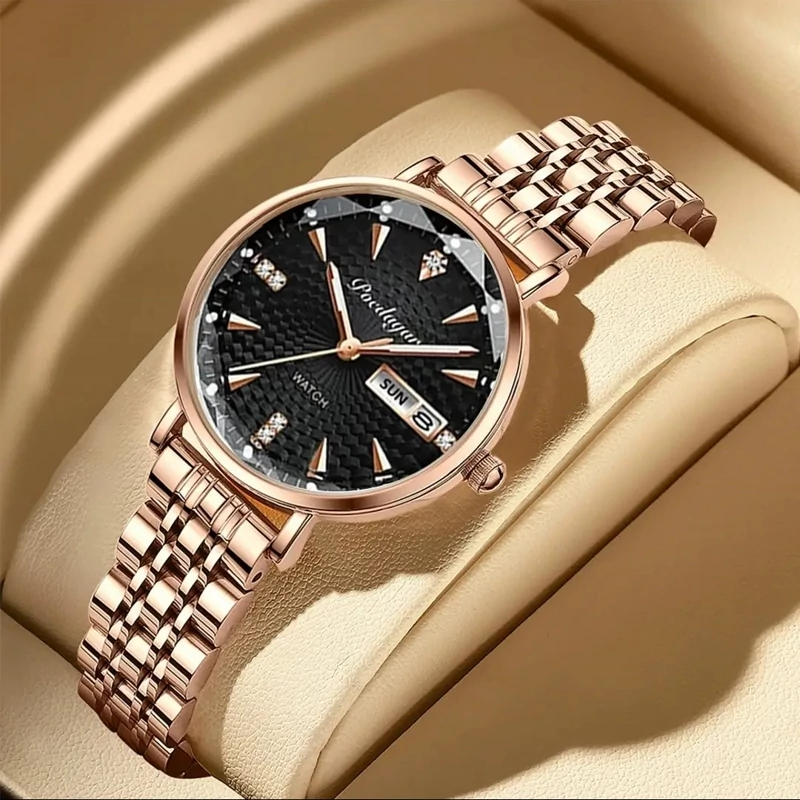 ساعت مچی زنانه پوداگار اورجینال poedagar بند استیل صفحه مشکی ارسال رایگان