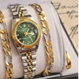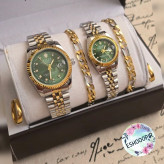 ساعت رولکس زنانه و مردانه Rolex ست با دستبند و انگشتر صفحه سبز با ارسال رایگان