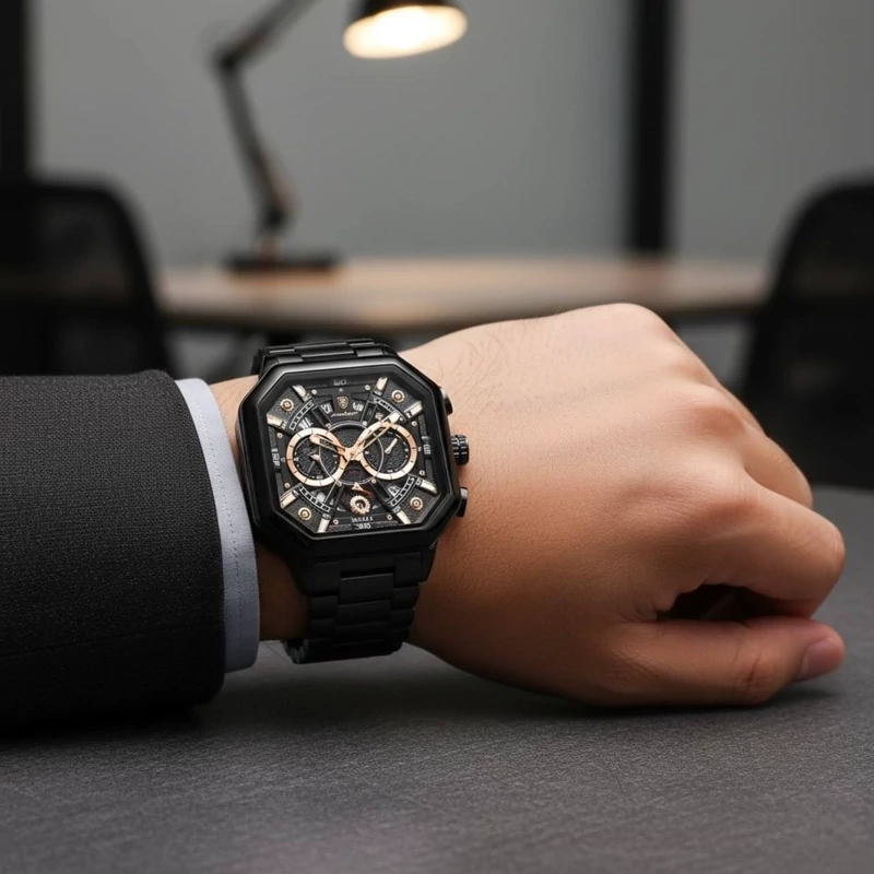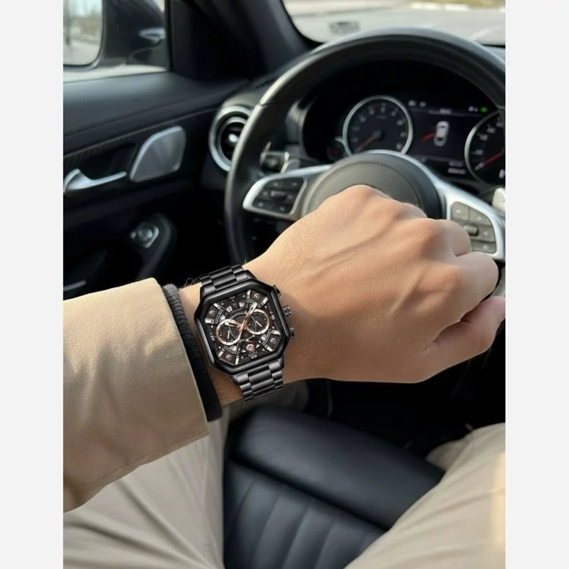 ساعت مردانه از برند محبوب پوداگار poedagar brand poedagar با باکس اصلی 🎁 اورجینال قطر 41 میلی متر رنگ ثابت قاب استیل روز شمار دارد بند استیل شیشه ضدخش ضدآب 3ATM بند مشکی با طرح داخل رزگلد ✅️ مناسب شیک پوشان و کسانی که به استایل خود اهمیت می دهند