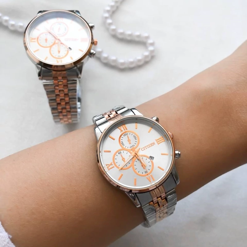 ⌚️⌚️ست ساعت مردونه و زنونه ✅️بند استیل ترکیبی نقره ای - رزگلد با صفحه روشن ✅️طرح 3 موتوره ✅️با تقویم فعال دارای جعبه 🎁 مناسب زوج ها ، عروس و داماد ، خانم ها و آقایون