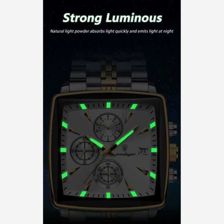 ساعت مچی مردانه پوداگار poedagar اورجینال کرنوگراف صفحه سبز