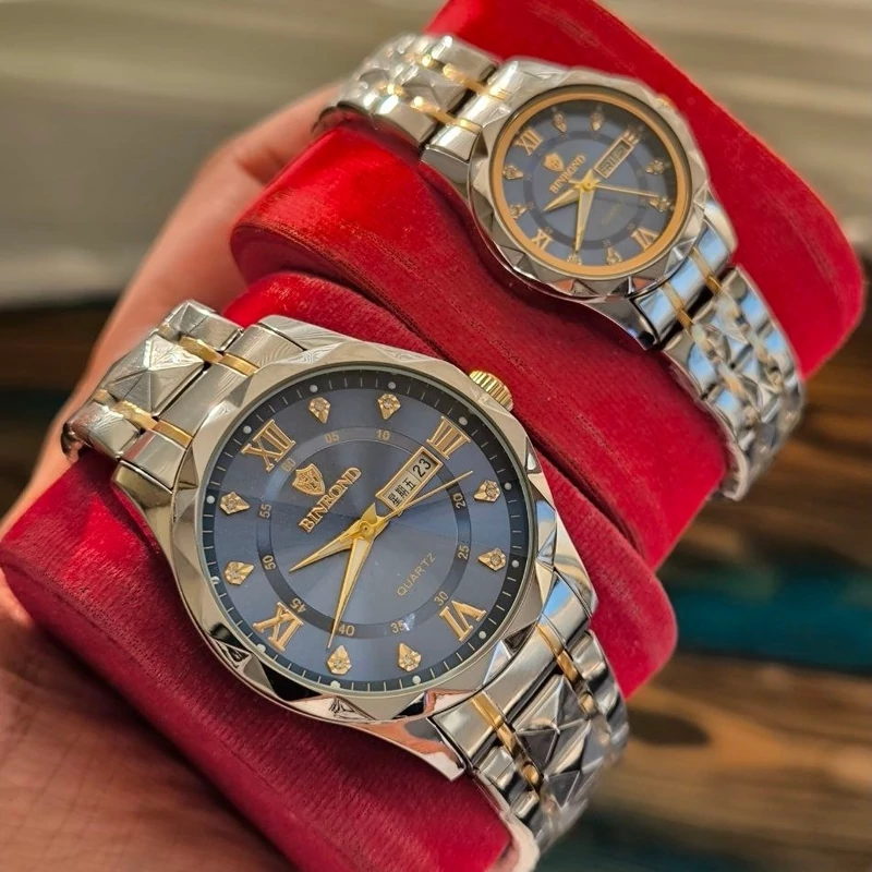 ساعت مچی مردانه زنانه اورجینال بین باند سرمه ای binbond دو تقویم فول استیل