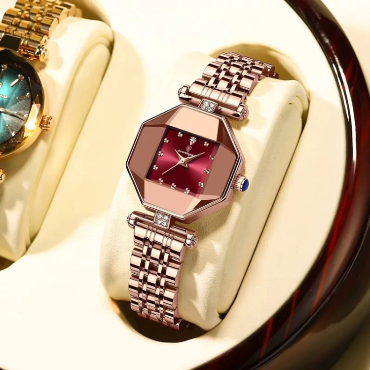 ساعت زنانه پوداگار Poedagar اورجینال بند استیل صفحه 8 ضلعی صفحه آلبالویی چری