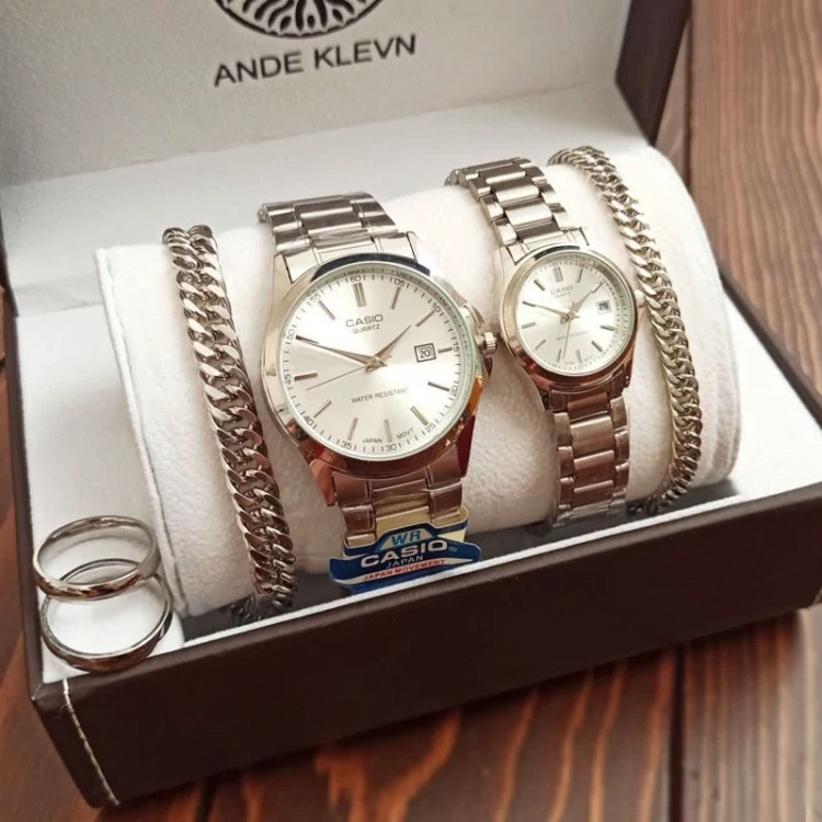 ست ساعت مردونه و زنونه کاسیو casio نقره ای استیل رنگ ثابت با کیفیت
