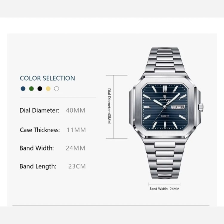 ساعت مچی مردانه پوداگار اورجینال poegagar صفحه مربعی سرمه ای