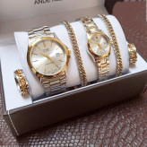 ✅️ست ساعت کاسیو با بند طلایی نقره ای با دستبند و انگشتر
