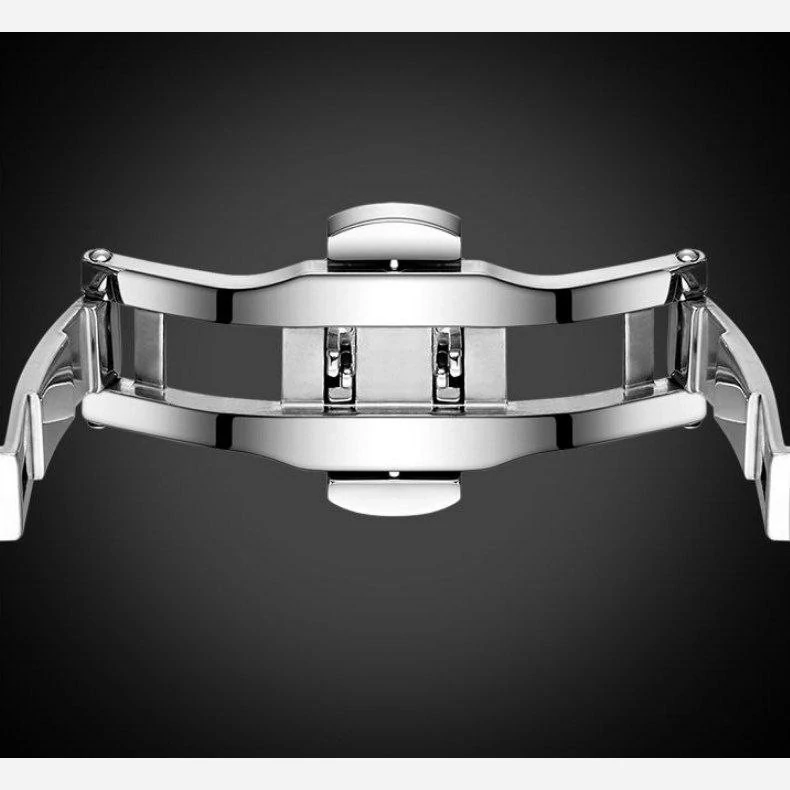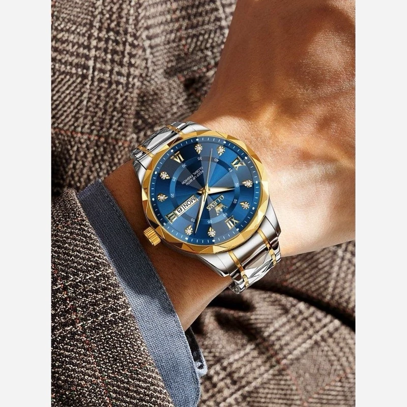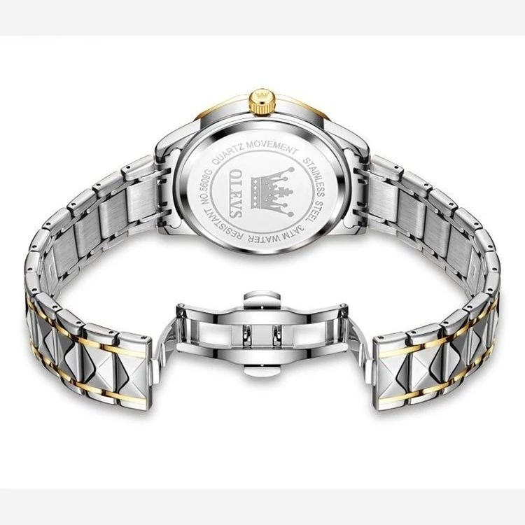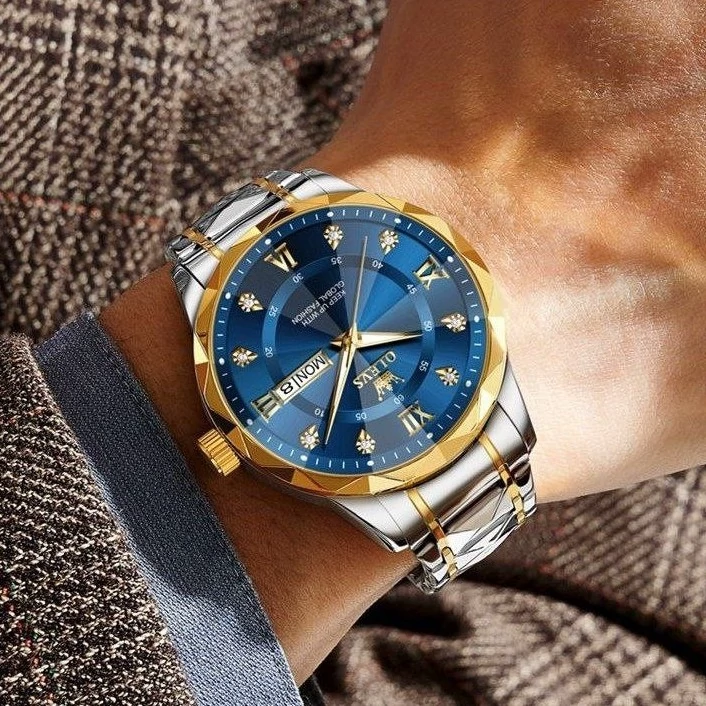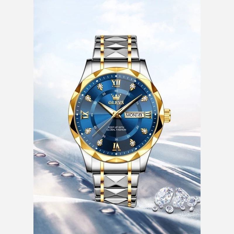 ساعت مردانه الوز اورجینال olevs الماسی بند استیل نقره ای صفحه سرمه ای