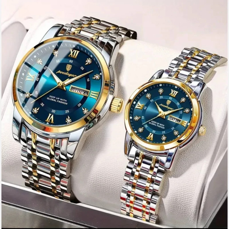 ست ساعت مردانه زنانه اورجینال پوداگار بند استیل poedagar صفحه آبی ضدآب ارسال رایگان
