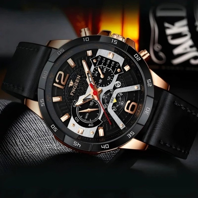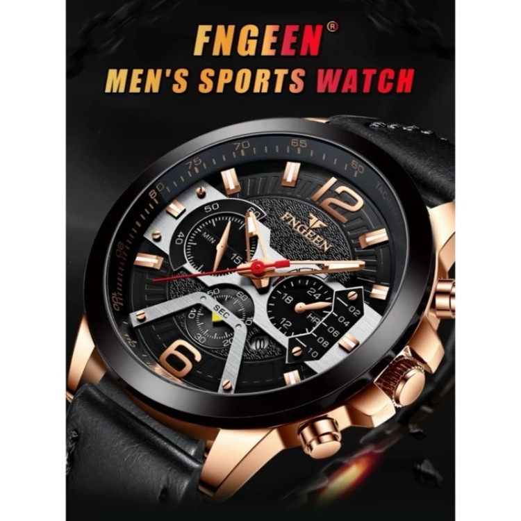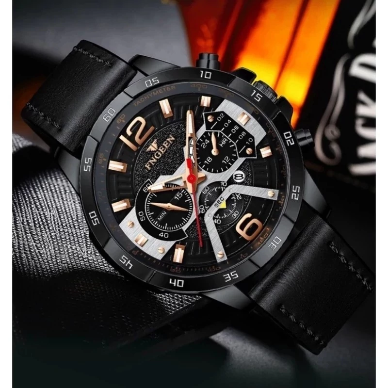 ساعت مچی مردانه fngeen اورجینال بند چرم مشکی اف ان جین