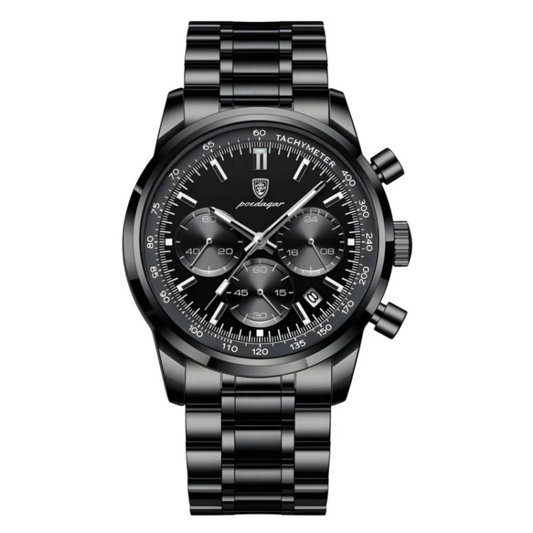 ساعت مچی مردانه پسرانه Poedagar پوداگار اورجینال کرنوگراف ضدآب استیل مشکی ارسال رایگان