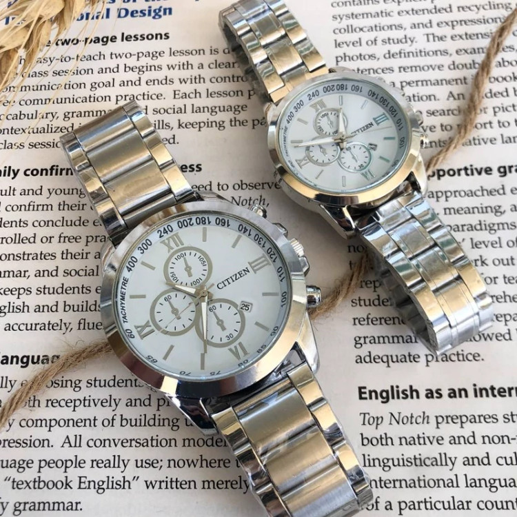 ست ساعت مردانه و زنانه رومانسون با بند نقره ای و صفحه سفید ، تقویم فعال و ارسال رایگان