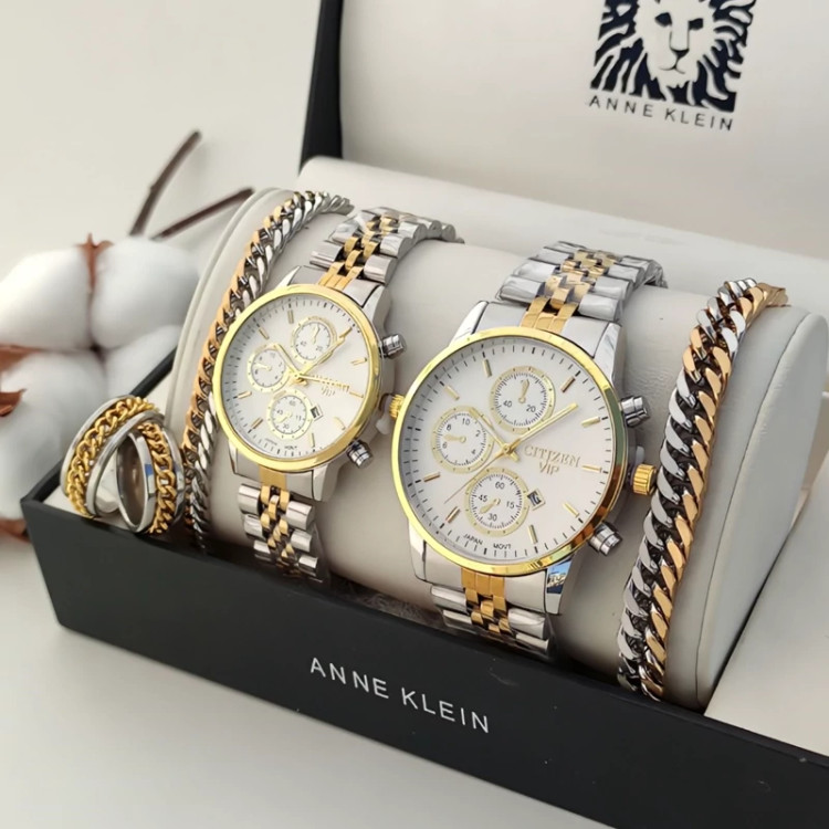 ست ساعت مردونه و زنونه سیتیزن vip با بند طلایی نقره ای و دستبند ست مردونه و زنونه و حلقه ست