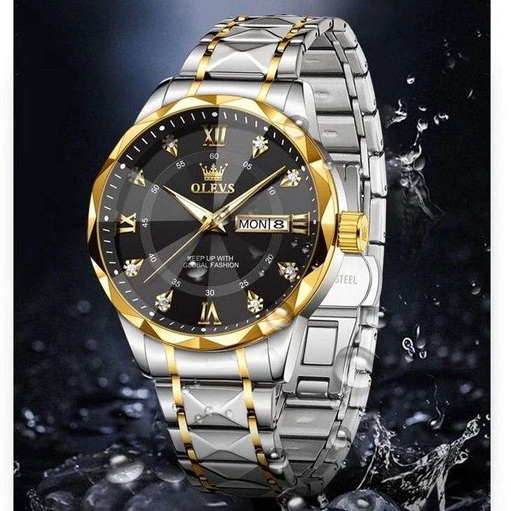 ساعت مردانه الوز اورجینال olevs الماسی بند استیل صفحه مشکی