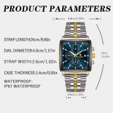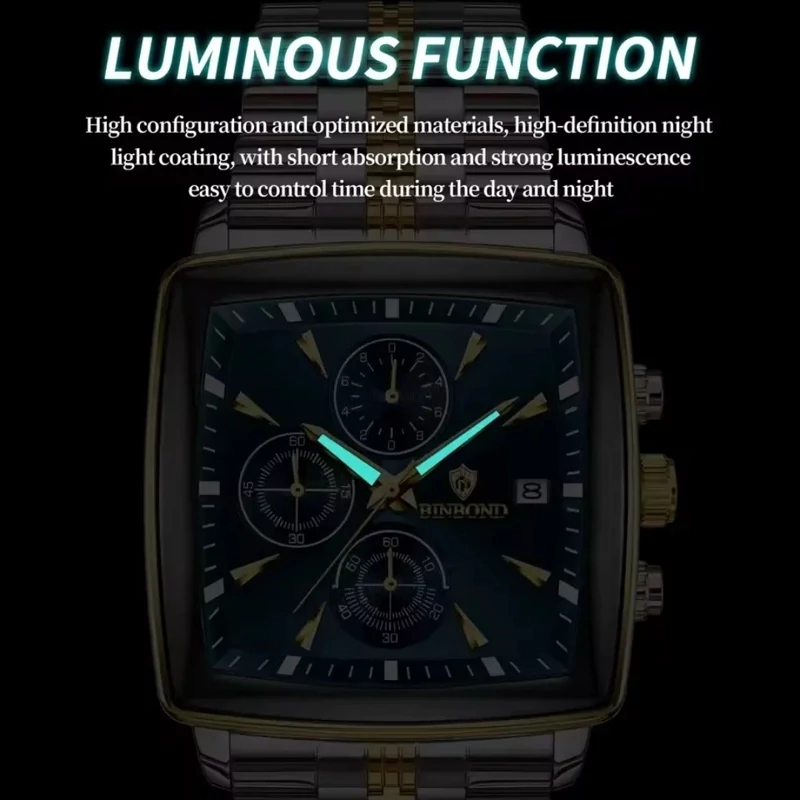 ساعت مردانه اورجینال بین باند binbond صفحه مربعی آبی بند استیل طلایی نقره ای