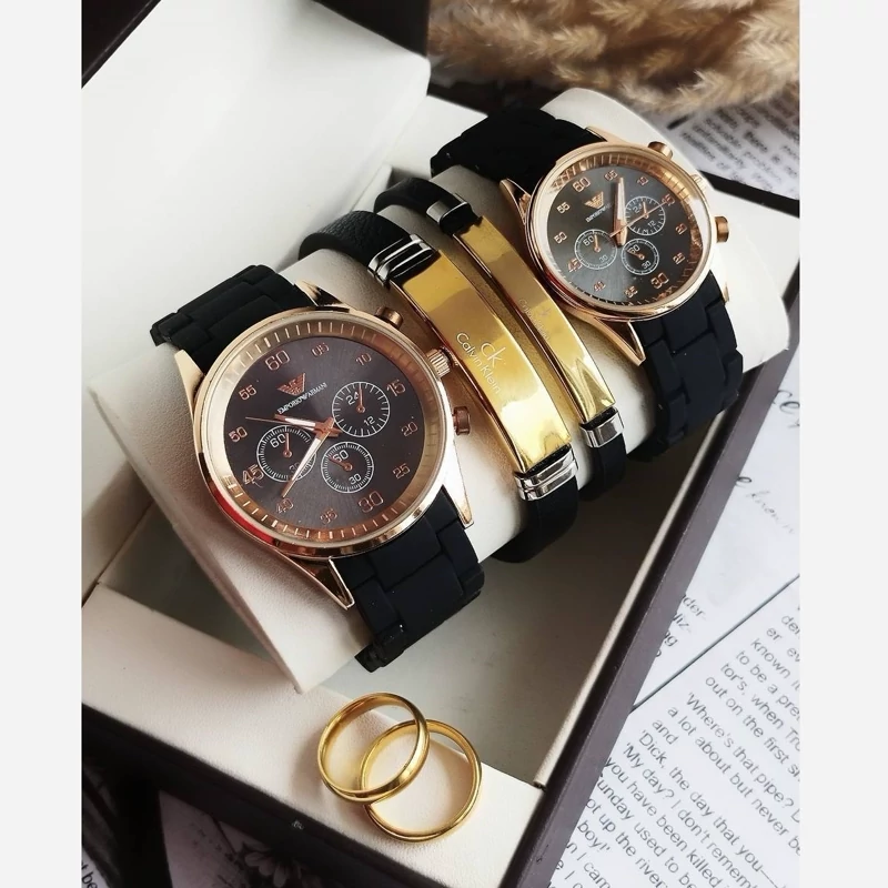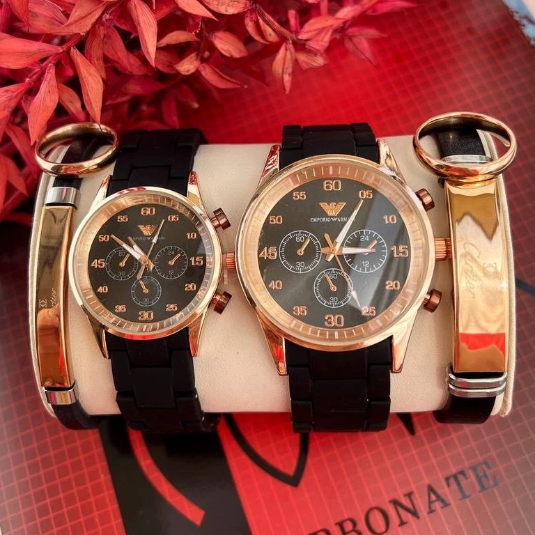 ست ساعت مردونه و زنونه برند امپریو آرمانی ست کامل شامل دو ساعت + دو دستنبد + دو انگشتر همراه با جعبه مناسب کادو ارسال رایگان به سراسر ایران