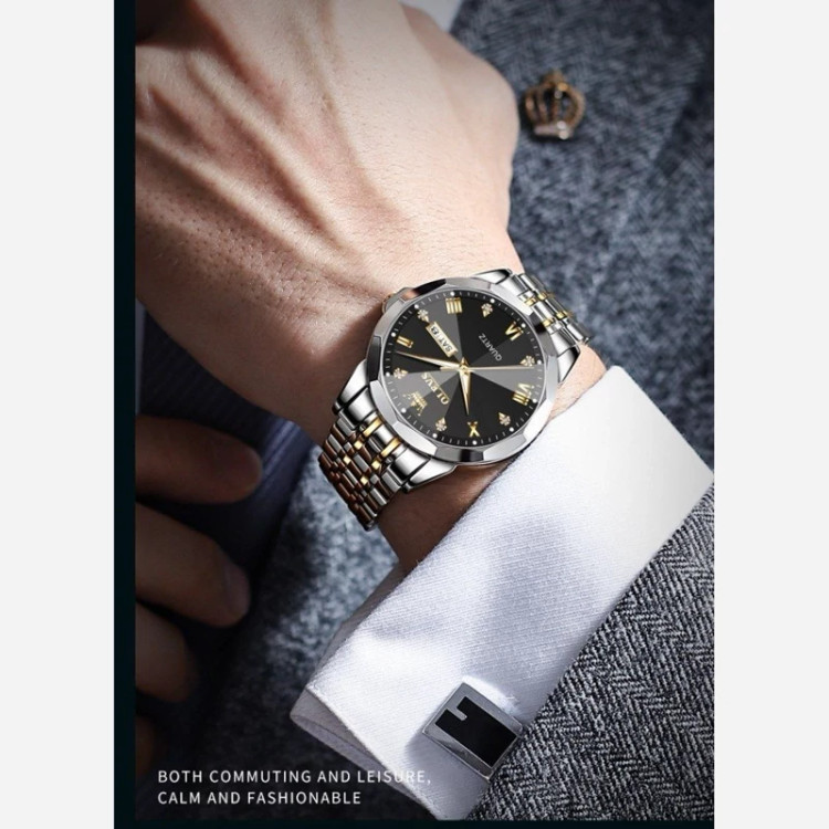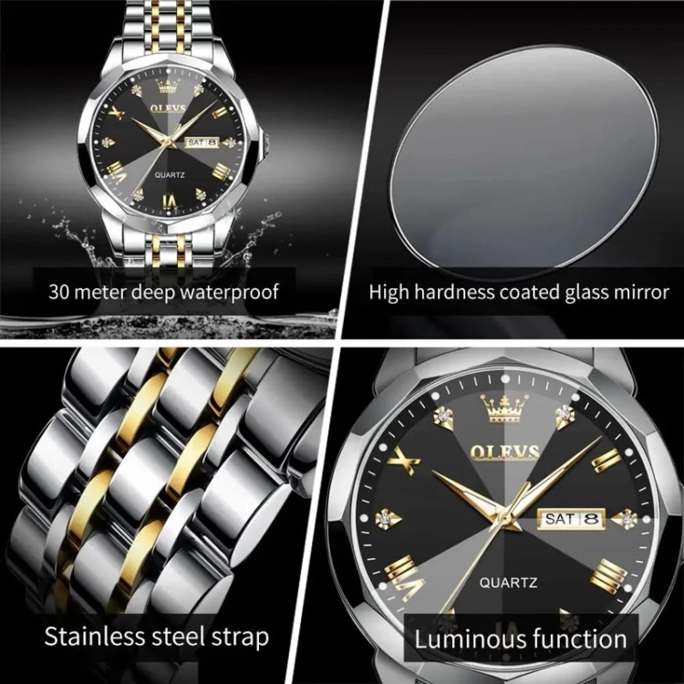 ساعت مچی مردانه الوز olevs اورجینال ضد آب موتور کوارتز صفحه مشکی