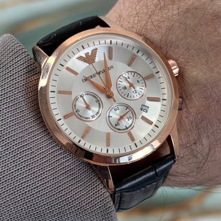 ساعت مچی مردانه امپریو آرمانی بند چرم سه موتور فعال کرنوگراف صفحه سفید