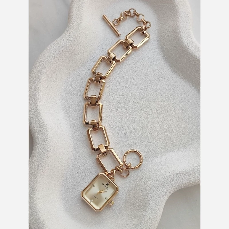 ساعت مچی زنانه شنل chanel ✅️ بند استیل طلایی ✅️ با رنگ ثابت ✅️ صفحه رنگی طلایی زیبا ✅️ خاص و با کیفیت ✅️ قفل تی T همراه با جعبه هدیه مناسب ساعت 🎁