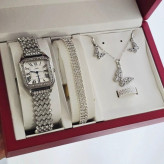 ست ساعت زنانه با بند نگین دار و قاب دور نگین