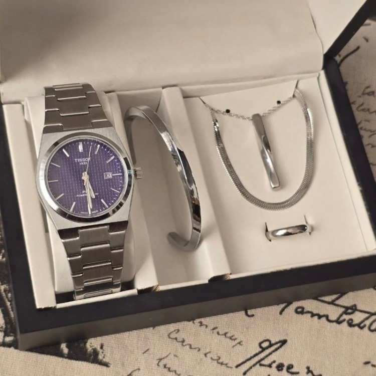 ست ساعت مردونه تیسوت با دستبند و گردنبند و حلقه کادو مردونه