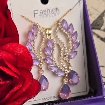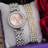 شامل ساعت با بند نگین دار و دستبند نگینی و نیمست نگینی جواهری بنفش