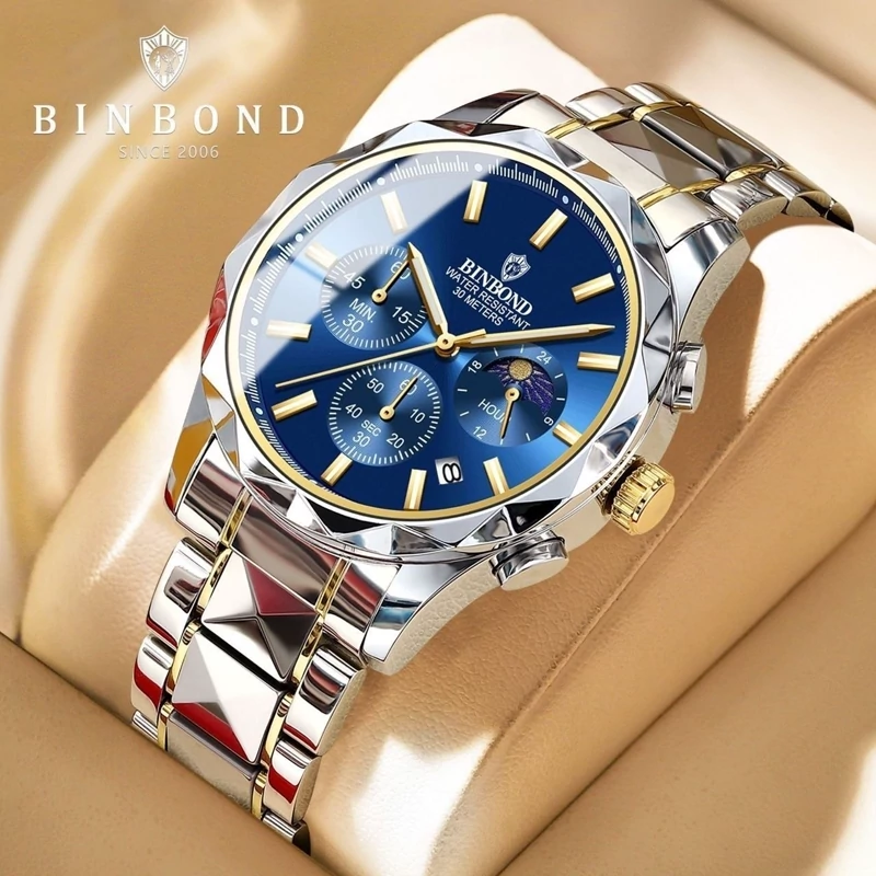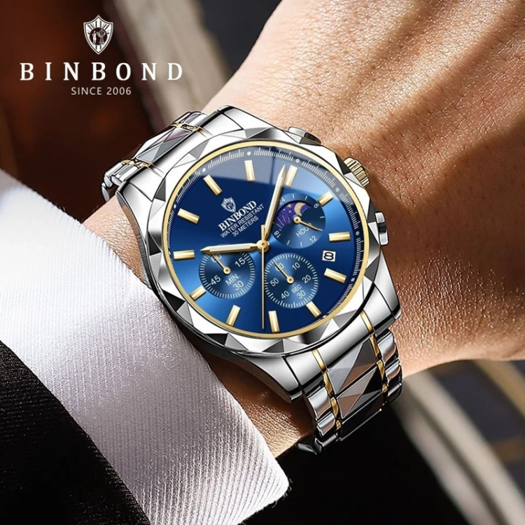 ساعت مچی مردانه بین باند Binbond اورجینال کرنوگراف صفحه آبی