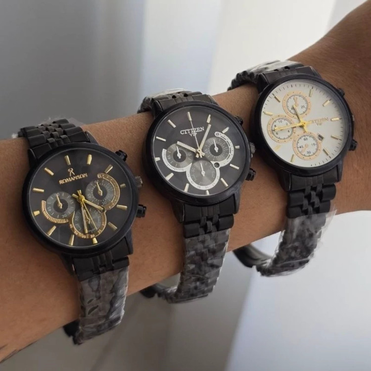 ساعت مچی زنانه عقربه ای رومانسون و سیتیزن با بند استیل مشکی با کیفیت و رنگ ثابت