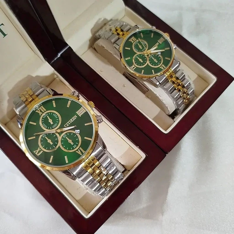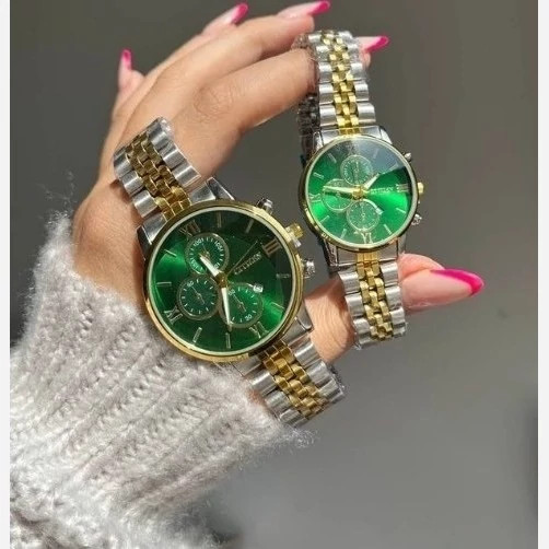 ساعت زنانه و مردانه سیتیزن طلایی نقره ای citizen صفحه سبز