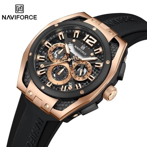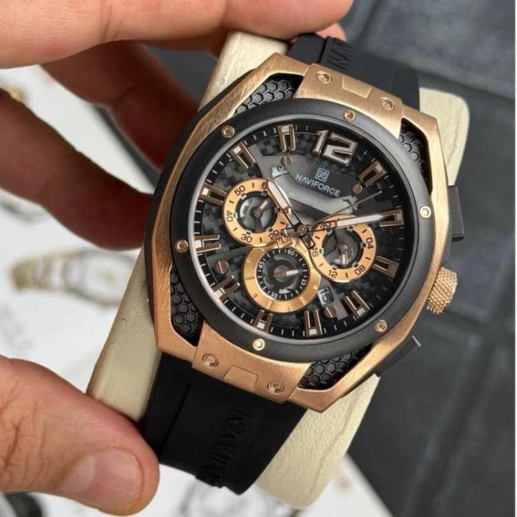 ساعت مردانه پسرانه نیوی فورس Naviforce اورجینال سه موتور فعال بند رابر مشکی