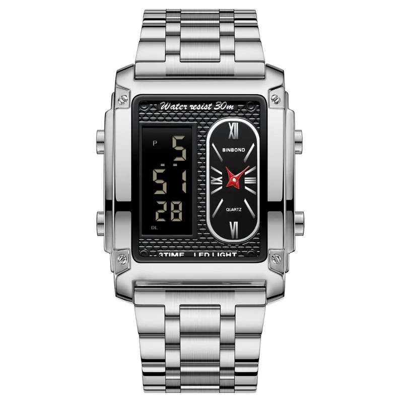 ساعت مچی مردانه اورجینال دو زمانه رنگ ثابت و ضدآب بینبند binbond ارسال رایگان